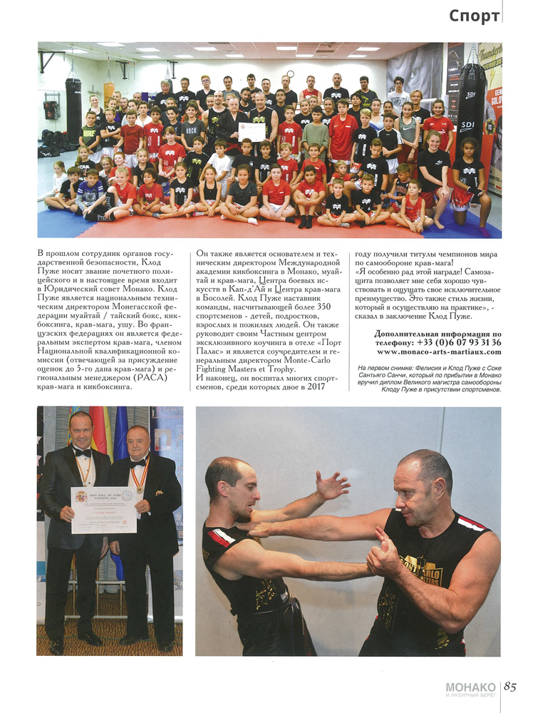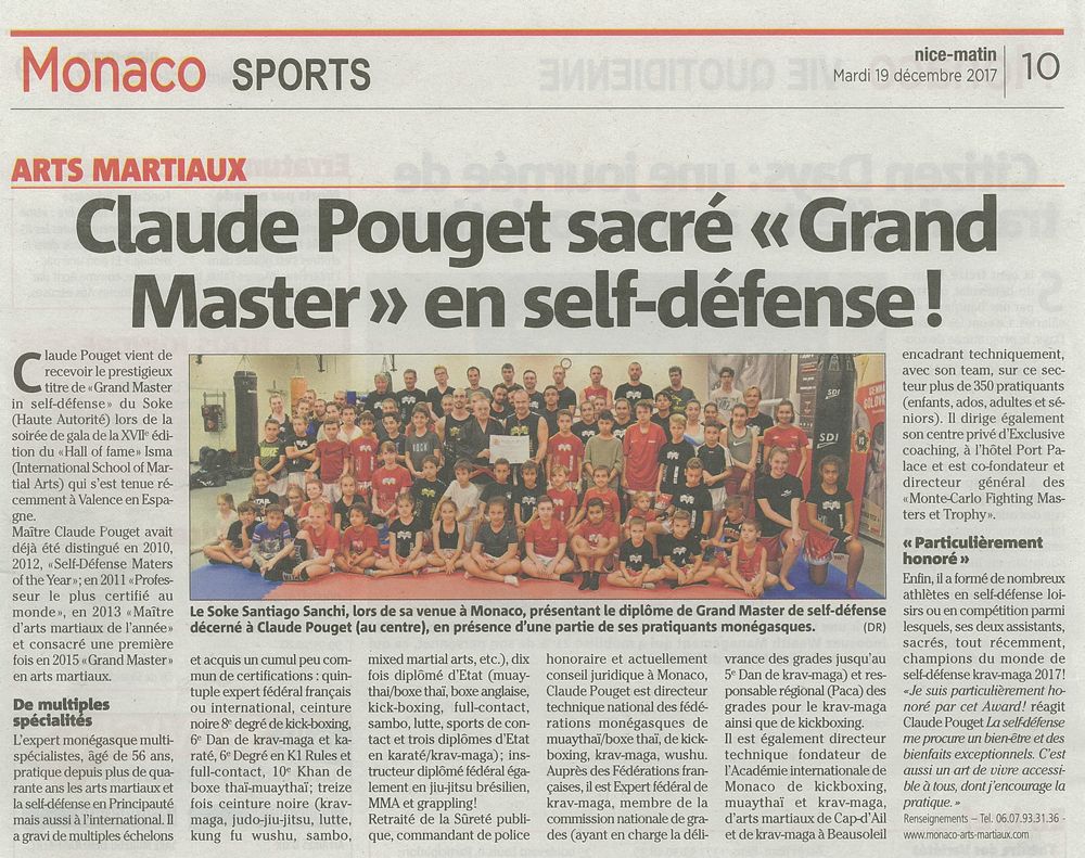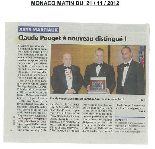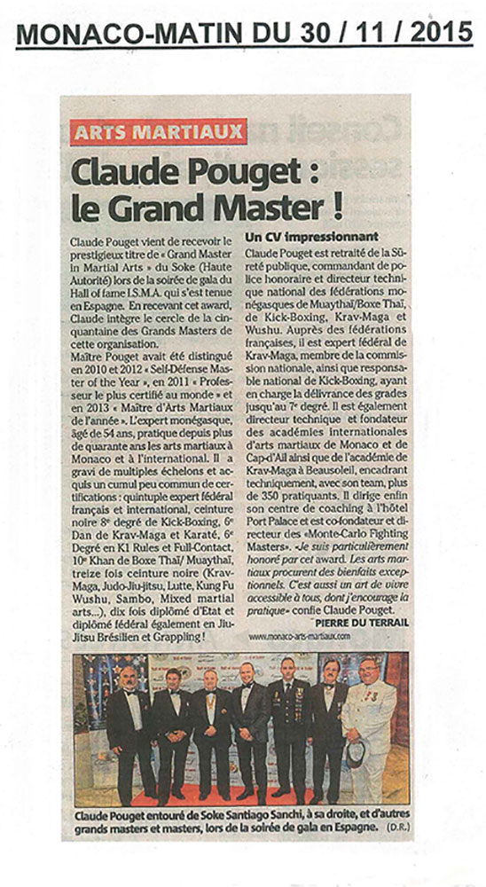 Claude Pouget, enseignant depuis une quarantaine d’années, titulaire de 10 diplômes d’état, dirige son enseignement des Arts Martiaux, des sports de combats et de la self-défense au sein des Académies Internationales d’Arts Martiaux de Monaco, Cap d’Ail (06) et de Krav-Maga à Beausoleil (06).